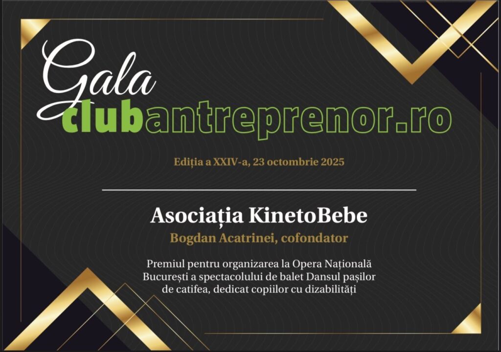 Proiectul derulat de Asociația KinetoBebe se înscrie într-o serie de inițiative care depășesc granițele tradiționale ale terapiei fizice, transformând recuperarea într-un proces emoțional, educațional și artistic. Distincția oferită de Club Antreprenor marchează nu doar recunoașterea unei idei inovatoare, ci și confirmarea unei misiuni de durată – aceea de a sprijini copiii și familiile lor prin programe integrate de sănătate și educație.