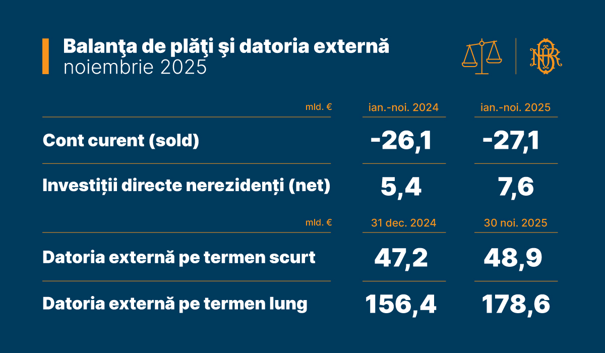 Balanţa de plăţi şi datoria externă – noiembrie 2025