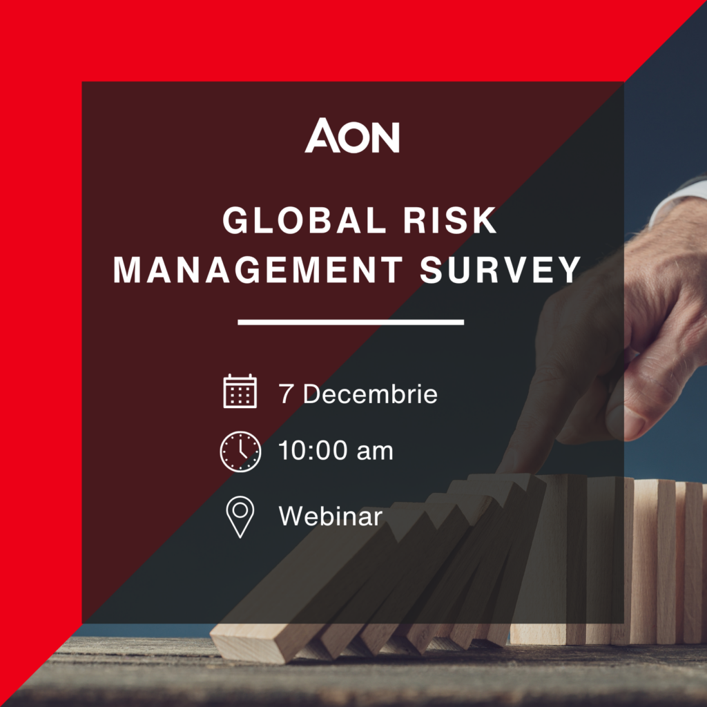 Aon Romania, one of the international leaders in insurance brokerage, is organizing Thursday, December 7th, the Global Risk Management webinar to present the results of the latest study on the risks that companies face. Risk management specialists will discuss the risks that companies face in periods of economic volatility, the need to attract and keep talents in the organization, the impact of cyberattacks, and the risks that generate disruption to the operations of organizations, some of the main problems facing companies globally.