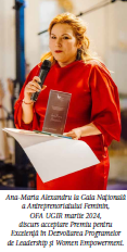 Pentru mine personal, este foarte important să continui să susțin – cu prioritate – atât la nivel individual, cât și la nivel de organizație, patronat, comunitate, prin toate soluțiile pe care le pot oferi de la coaching la formare și mentorat – în programe dedicate, acele femei-lider, care își asumă roluri de înaltă responsabilitate în societate, care muncesc asiduu să producă rezultate benefice în dezvoltarea economică, educațională și socială, în domeniul inovației și al cercetării, în sănătate și în conducerea politică atât din țara noastră cât și de peste hotare. Pentru că susținerea reală a femeilor, ca ele să se simtă încurajate și să fie în deplinătatea puterilor lor, este vital pentru viitorul nostru al tuturor pe care ele îl creează împreună cu noi toți. Pentru că femeia înseamnă în primul rând creatoare de viață. Și hrănind cu abilitățile ei unice fiecare loc în care se află tot ce atinge poate să înflorească, atâta timp cât vine dintr-un spirit de cooperare și nu de competiție.