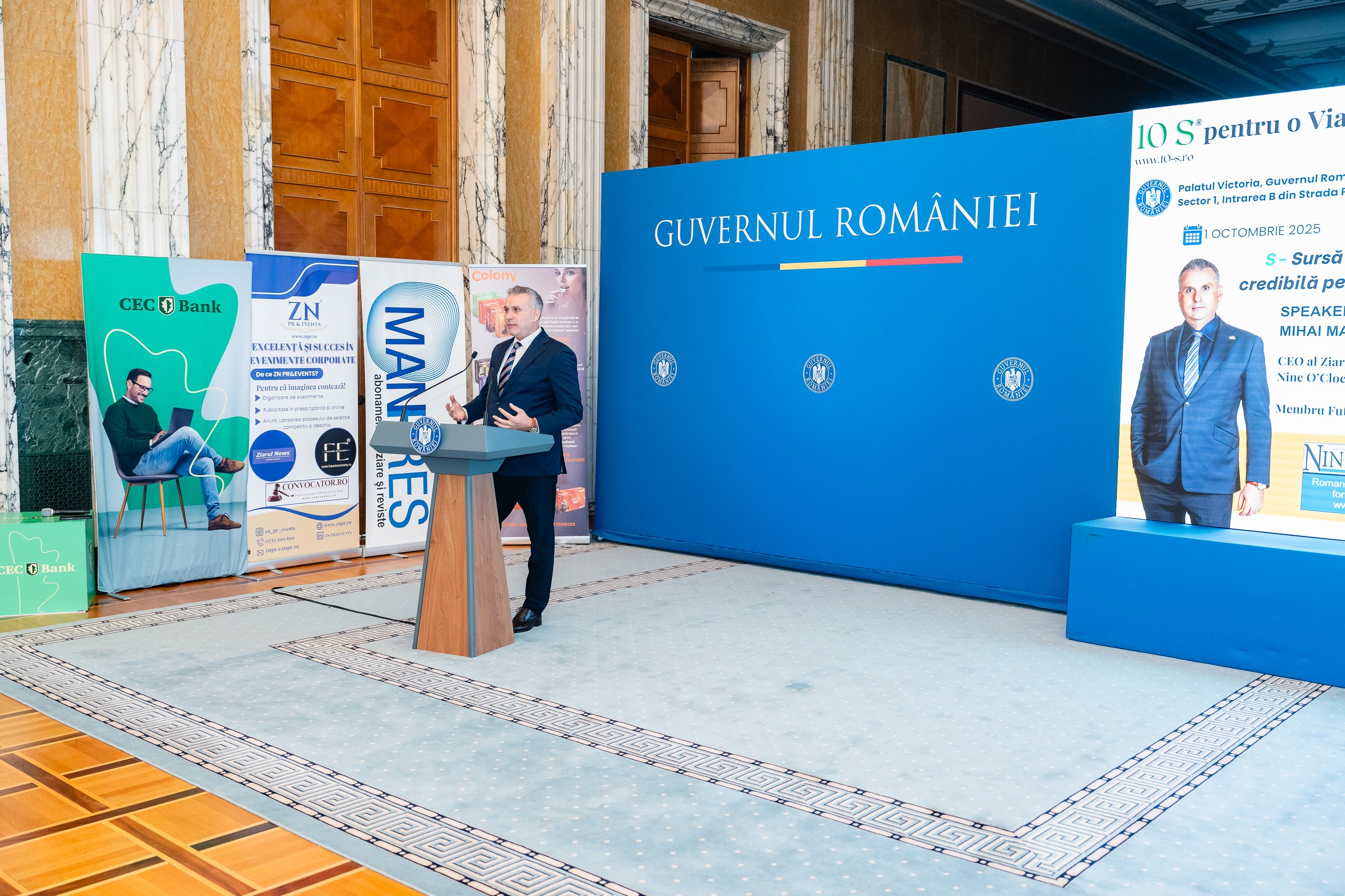 Mihai Manea – fondatorul companiei Manpres și CEO al ziarului diplomatic Nine O’Clock, a participat în calitate de speaker la cea de-a doua ediție a Conferinței Naționale „10 S pentru o Viață de Succes, desfășurată pe 1 octombrie 2025, la Palatul Victoria, Guvernul României.