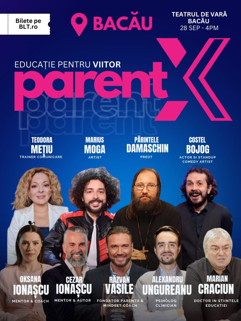 PARENTX, fenomenul educațional ce promite să schimbe percepțiile și să deschidă noi orizonturi în relaționarea părinte-copil, ajunge pe 28 septembrie 2024 la Bacău. Evenimentul are loc, de la ora 16:00, la Teatrul De Vară ”Radu Beligan”.